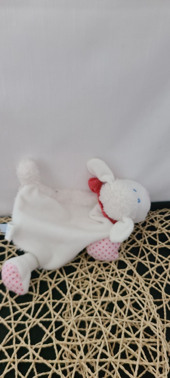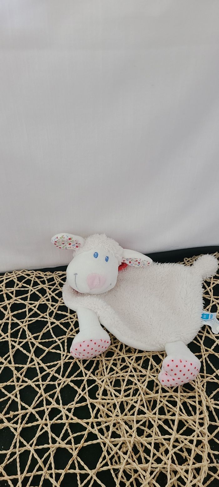 Doudou plat mouton blanc bandanas rouge imprimé fleur TEX - photo numéro 4