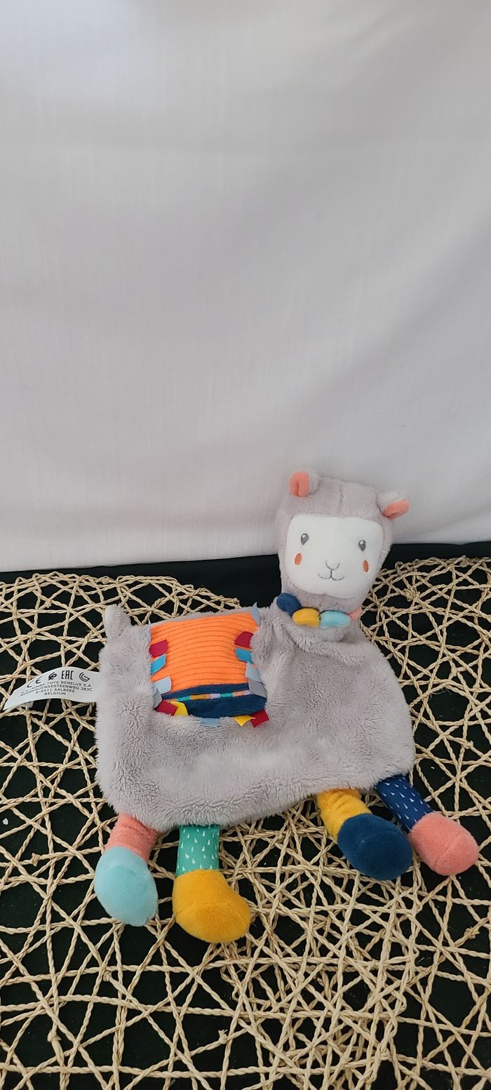 Doudou plat lama SIMBA TOYS gris orange bleu 4 pattes - photo numéro 5