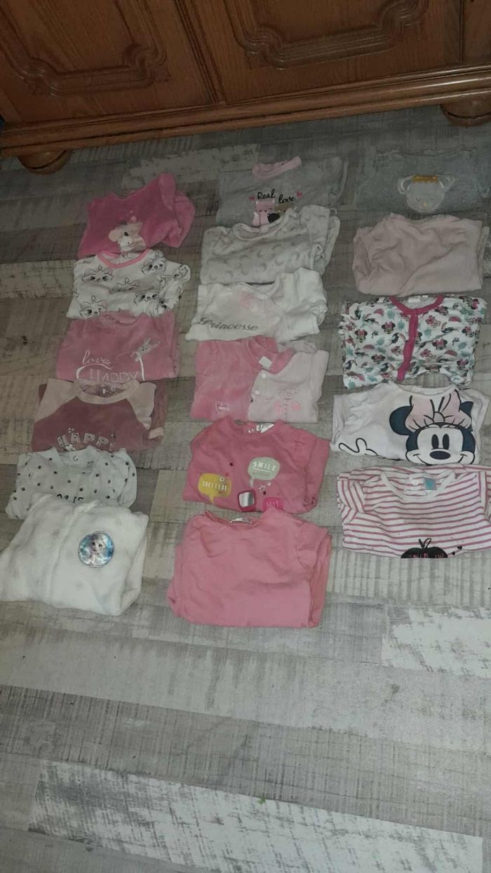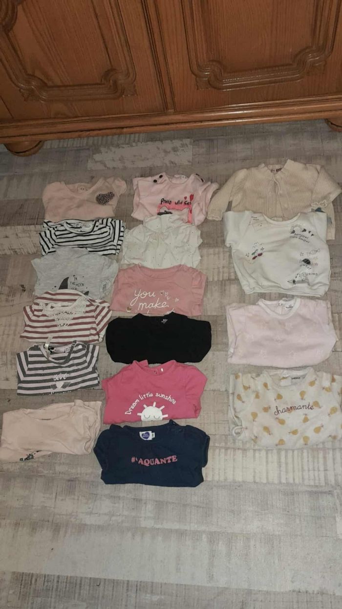Très bonne état Taille 6/9 mois 19 pyjamas 12 pantalons/leggings 3 bodies manches courtes 7 bodies manches longues 1 barboteuse fleurie 11 haut manches longues 1 haut manches courtes 1 gilet 1 sweat 7 robes 2 bonnets Toutes marques 65 articles