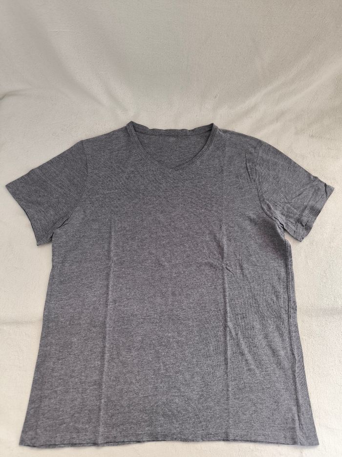 T-shirt à manches courtes Marque Kiabi Taille XL • Coloris gris • Coupe regular fit • Col V • Tissu fin Largeur épaule à épaule non étirée : 46 cm Largeur épaule à épaule étirée au maximum : 65 cm Largeur aisselle à aisselle non étirée : 54 cm Largeur aisselle à aisselle étirée au maximum : 77 cm Longueur totale : 72 cm Longueur aisselle : 44 cm Peu porté, en très bon état #evelynehommes