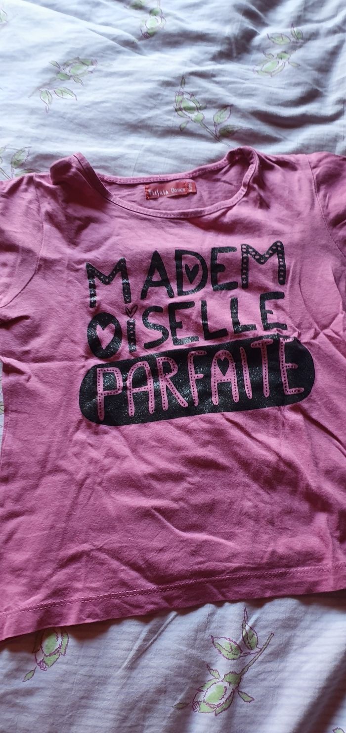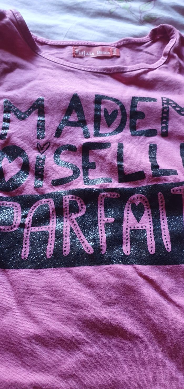 Tee shirt rose 6 ans Tissaia Petit trouve au dos voir photo