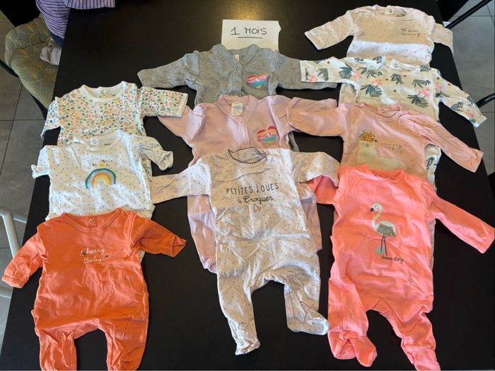 Vend 10 pyjamas léger en coton Taille 1 MOIS Possibilité de vendre à l’unité à 1,5€