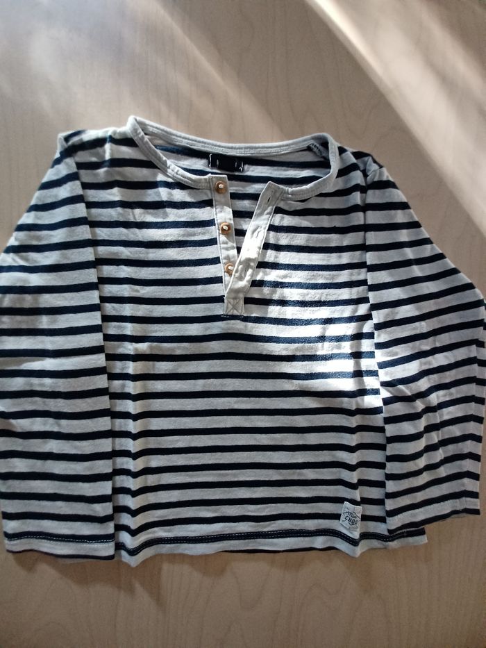 Tee shirt manches longues rayé bleu et blanc