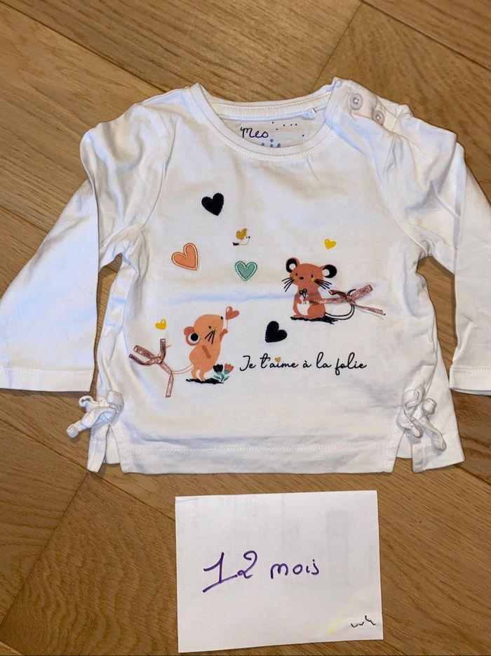 Lot tee-shirts manches longues fille – 12 mois – automne/hiver - photo numéro 10