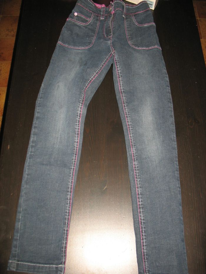 #10Ans_Fille_Nathg2210 JEAN SLIM BLEU FONCE FILLE "ORCHESTRA" - 10 ANS - n°01 Jean slim bleu foncé - Liserai rose - Plusieurs poches - Taille réglable par élastique - Fermeture par zip et pression - Dimensions taille à plat : 33 cm et longueur totale : 82 cm - Matière : Étiquette coupée mais coton et élasthanne. Article d’occasion en très bon état - Sans trou - Ni tache - Lavé et repassé pour la vente. Possibilité d'envoyer d'autres photos sur simple demande. Maison non-fumeur - Sans animaux. Réduction lot activée. Allez voir mes autres ventes, je vide les placards. Beaucoup de vêtements de marque et beaucoup de jouets. Remise en mains propres ou possibilité d'envoi au tarif en vigueur à votre charge. Retour Refusé. Pour tout renseignement, n'hésitez pas à me contacter, je répondrai volontiers à vos questions. Réponse Assurée. Pour Consulter mes autres annonces tapez Nathg2210.
