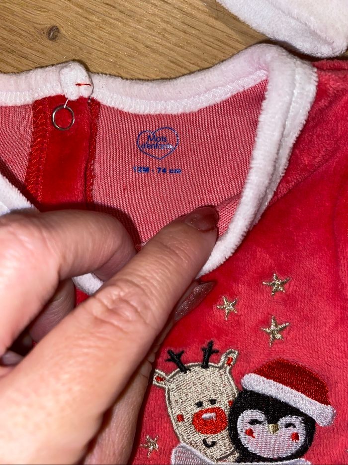 Pyjama Mère Noël avec jupe en tulle – 12 mois 🧵 Pyjama fille esprit Mère Noël 🎅, rouge avec jupe en tulle et bonnet assorti. 📍 État : Porté une seule fois, très bon état 💬 Magnifique pour Noël 🎄 avec ouverture pression pratique pour la couche. 🎁 Réductions automatiques sur les lots activées 🏷️ @12mois_nasta37