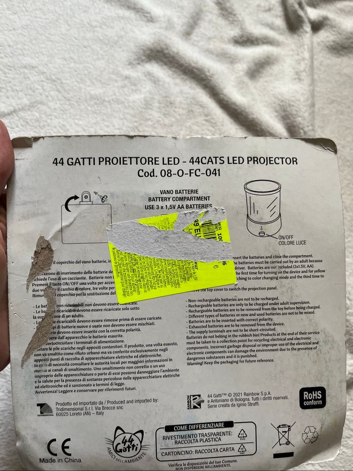 Veilleuse chat 4 motifs différents Fonctionne avec piles non fournies Neuf