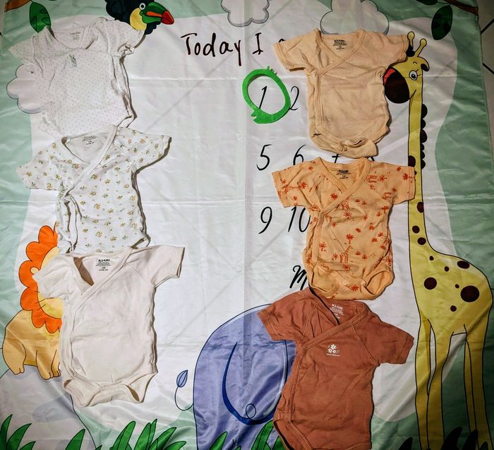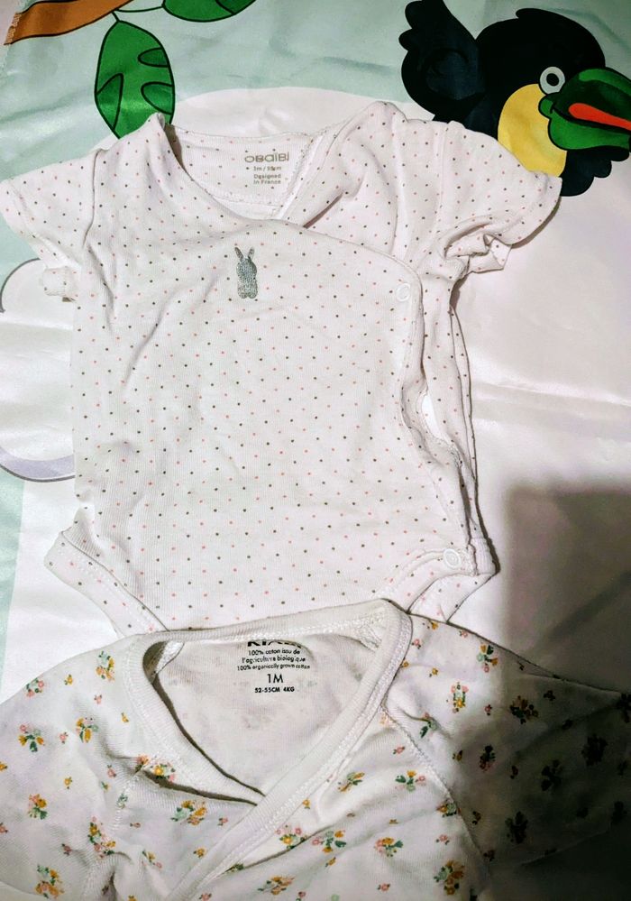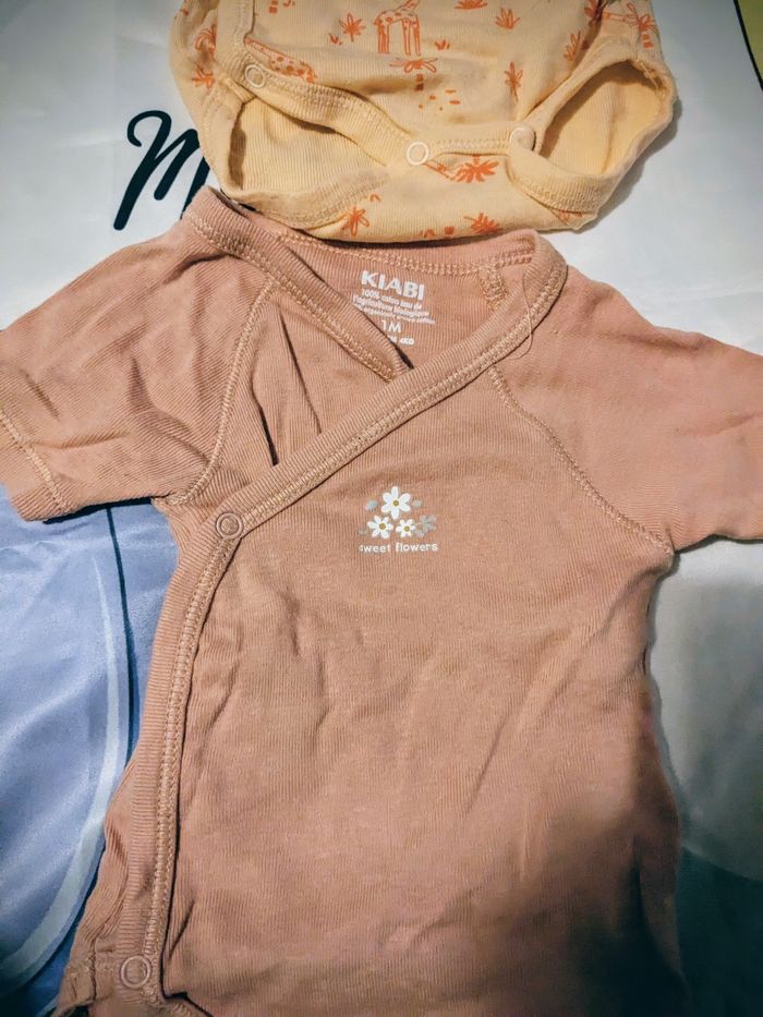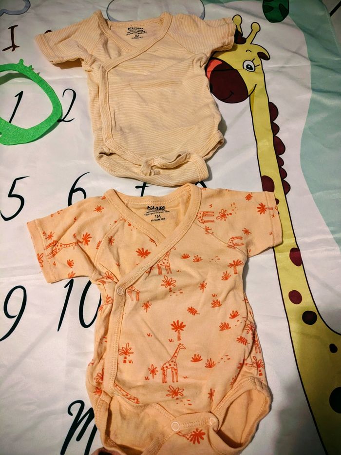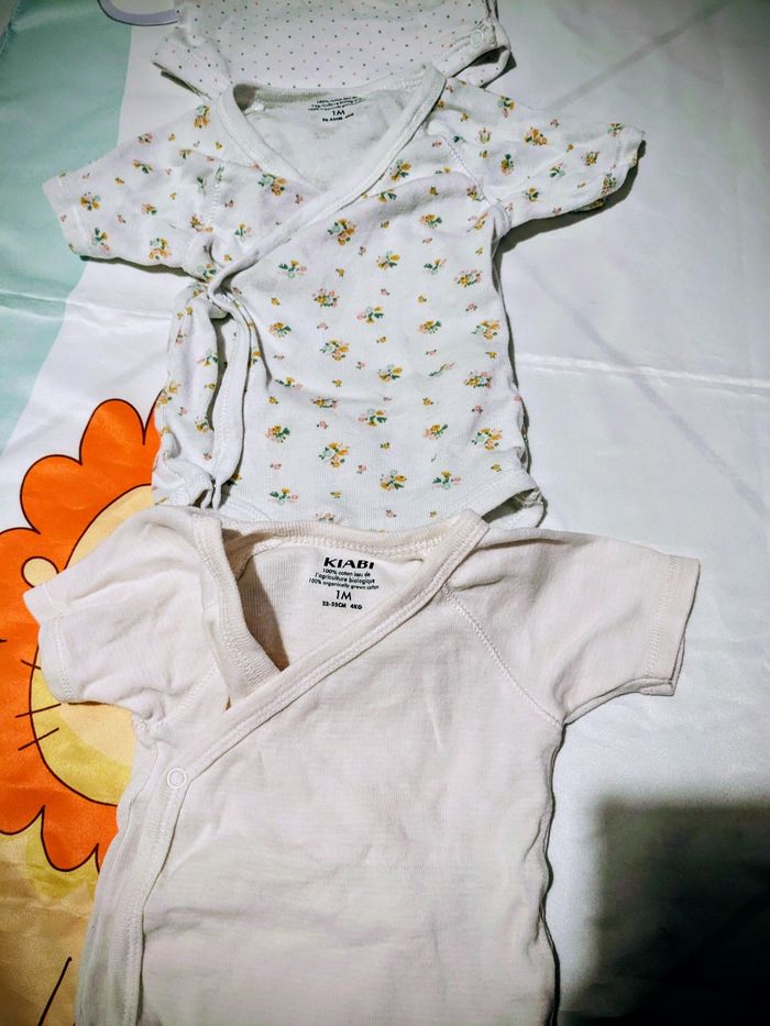 Je vends ce lot de 6 bodys manches courtes pour bébé de 1 mois Kiabi.