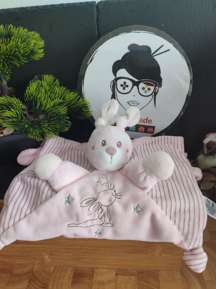 doudou lapin rose simba toys nicotoy marron rayé rayure carré plat noeud étoile
