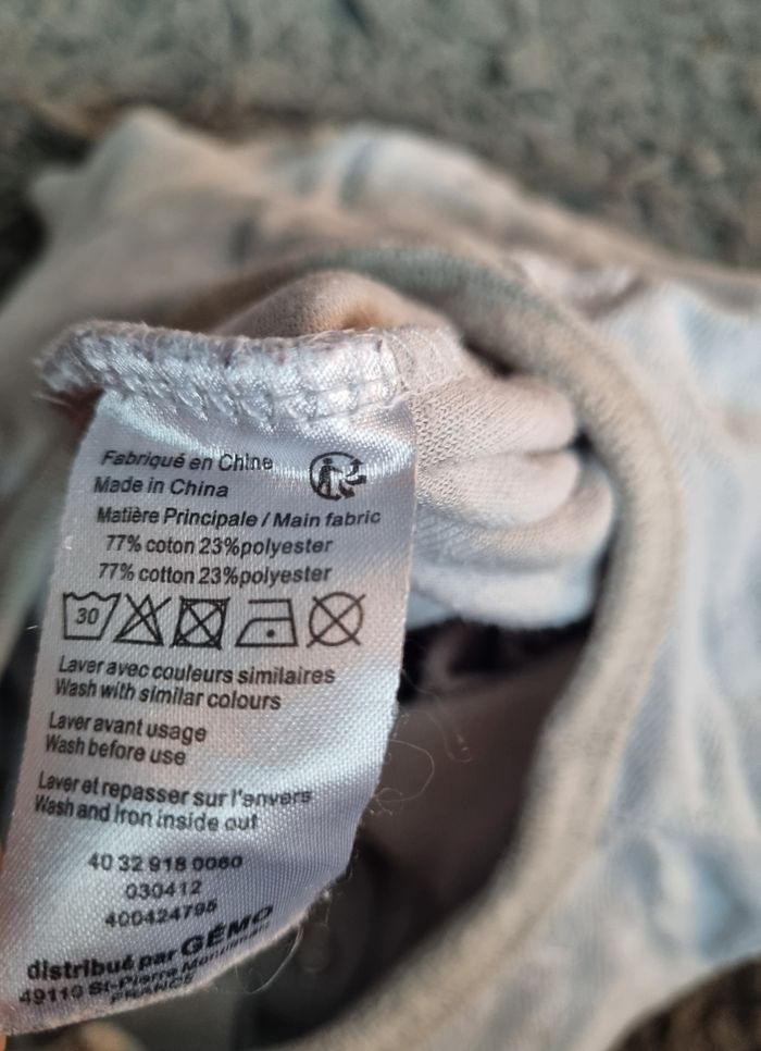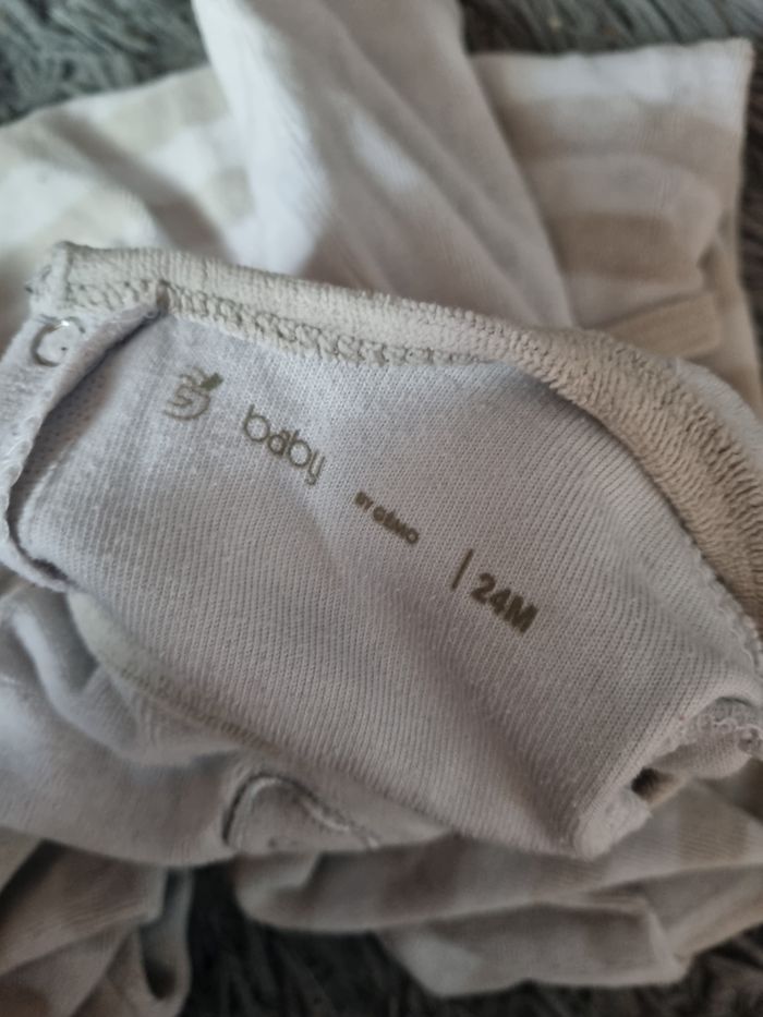Grenouillère à rayures avec lapin et écriture, taille 24mois marque Gémo, légèrement taché sous les pieds voir photo.