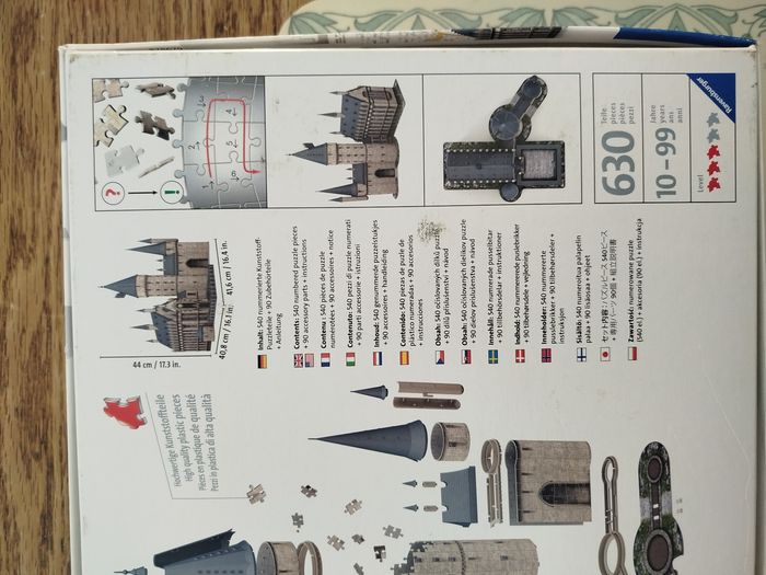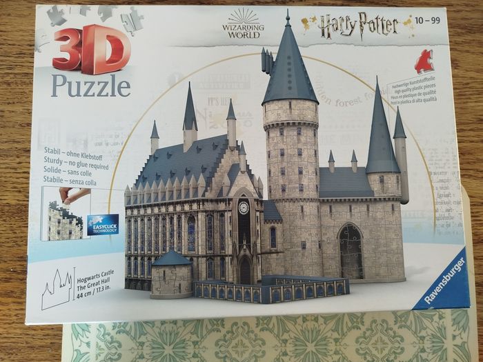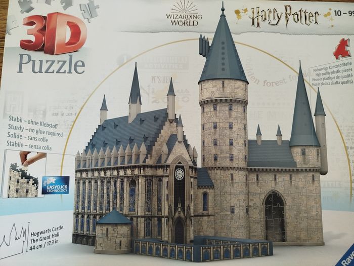 Puzzle 3D Harry Potter le château 🏰 Marque : ravensburger Âge : 10-99 ans Contenu : 540 pièces de puzzle numérotées+ 90 accessoires+ notice.. État : excellent état Puzzle 3D Harry Potter le château 🏰 Des puzzles dans la troisième dimensionL'idée cadeau parfaite pour tous les fans de Harry Potter. Pièces en plastique de haute qualité dotées de la technologie Easyclick pour un ajustement parfait. Stable, totalement sans colle À l'aide de 540 pièces de puzzle en plastique de haute qualité et de nombreux accessoires, le bâtiment emblématique des films Harry Potter est créé pièce par pièce, ce qui en fait un objet de décoration parfait L'école de sorcellerie et de magie de Poudlard, en tant que puzzle 3D produit en Europe, attire tous les regards dans chaque pièce et constitue un incontournable pour tous les vrais fans de Harry Potter Que ce soit pour les garçons ou les filles, les enfants ou les adultes, c'est une activité idéale au succès garanti. Grce à des instructions illustrées et colorées et à des pièces de puzzle numérotées, rien ne vous empêche de vous amuser dans un puzzle en 3D Niveau de difficulté 35 ; dimensions du puzzle terminé : hauteur environ 44 cm, longueur environ 41,6 cm, largeur environ 40,8 cm