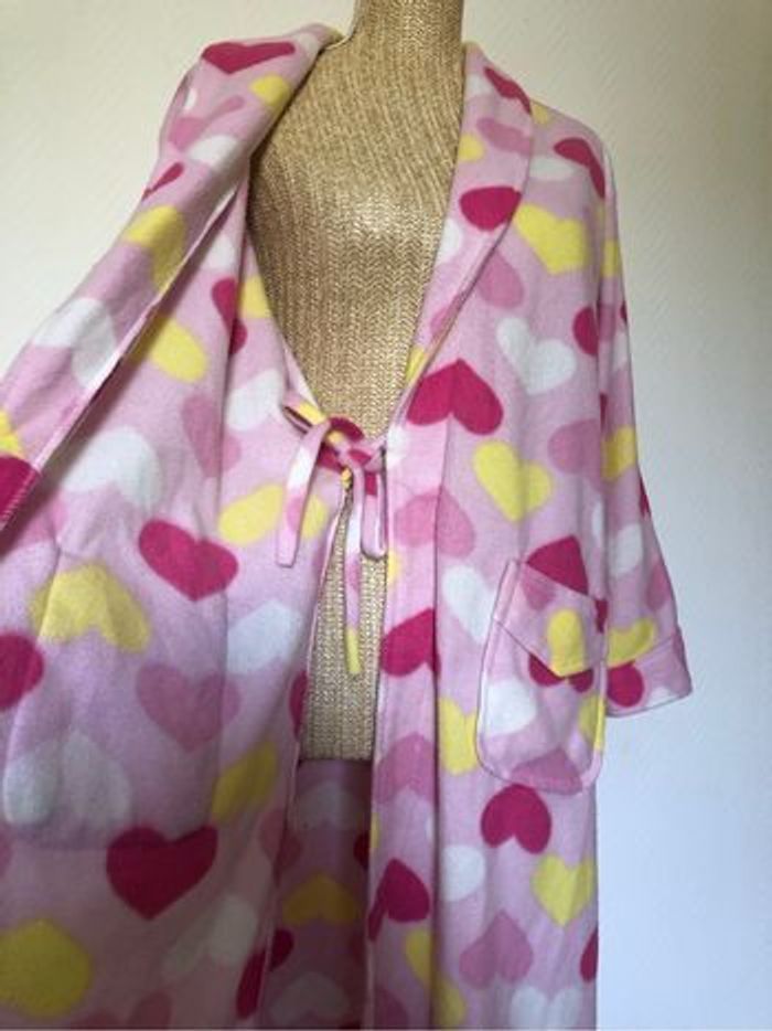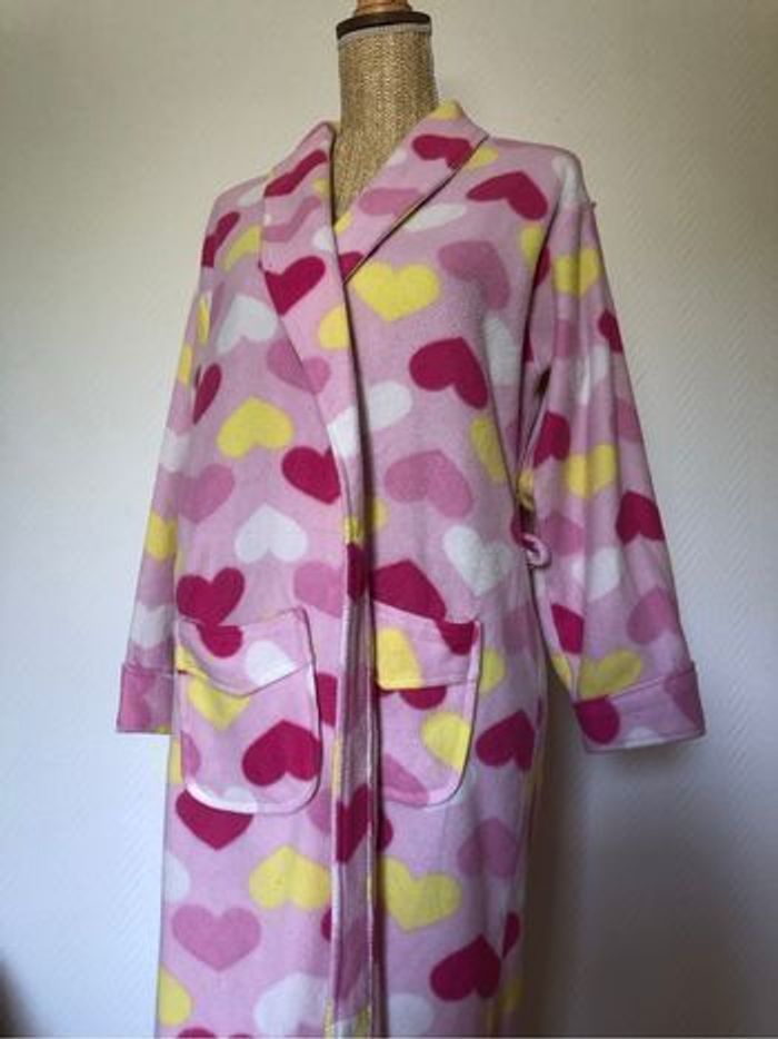 Robe de chambre type peignoir femme et fille Taille 38 Couleur rose avec des cœurs ♥️ rose jaune et blanc Bon état Marque Suany Yu La ceinture extérieure est manquante
