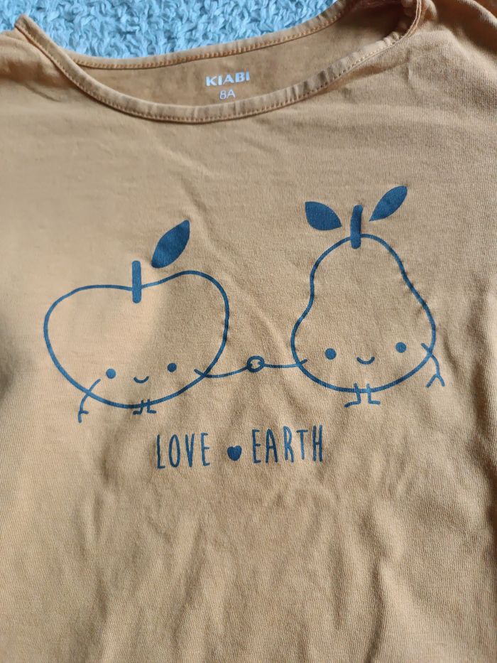 Joli t-shirt à manches longues pour fille, taille 8 ans 🌟 Couleur jaune moutarde moderne 🌼 Motif fruits rigolo 🍎🍐 avec inscription Love Earth Confortable, pratique pour l’école ou la maison Matière coton douce et agréable à porter 👌 👉 Envoi rapide 📦 👉 Dressing moderne & à petit prix ✨ 👉 Découvre aussi mes autres articles