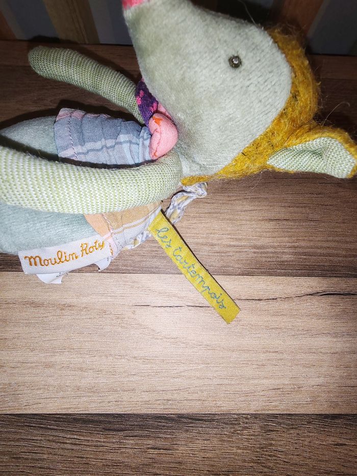 Doudou hochet loup MOULIN ROTY Les tartempois grelot anneau de dentition 21 cm environ tbe Étiquette marque présente Envoi en relais