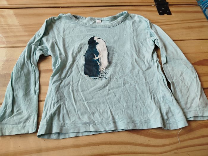 Maillot manches longues de couleur bleu clair motif pingouin taille 4 ans