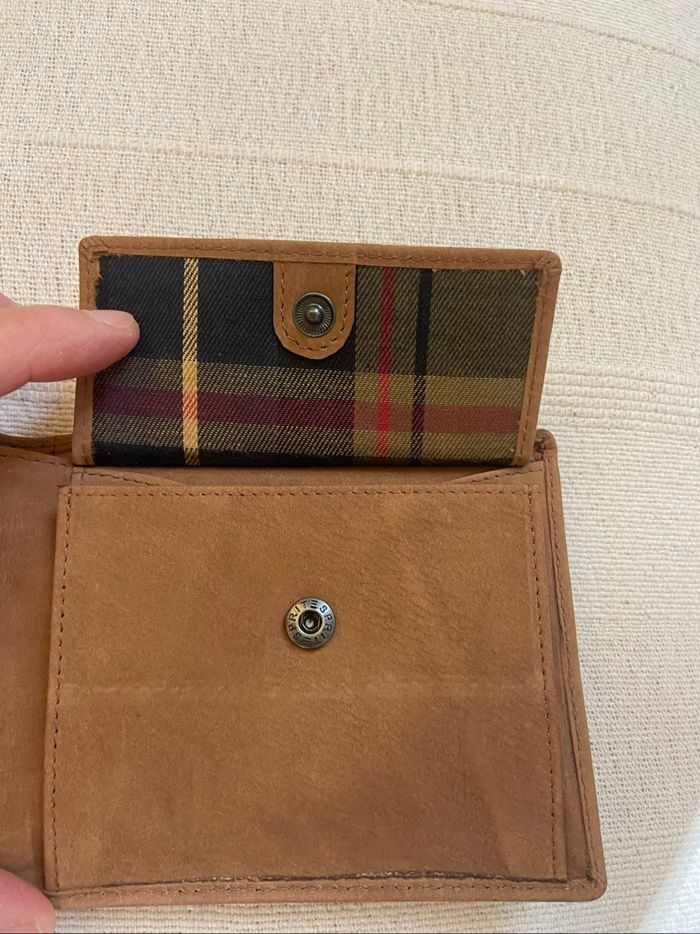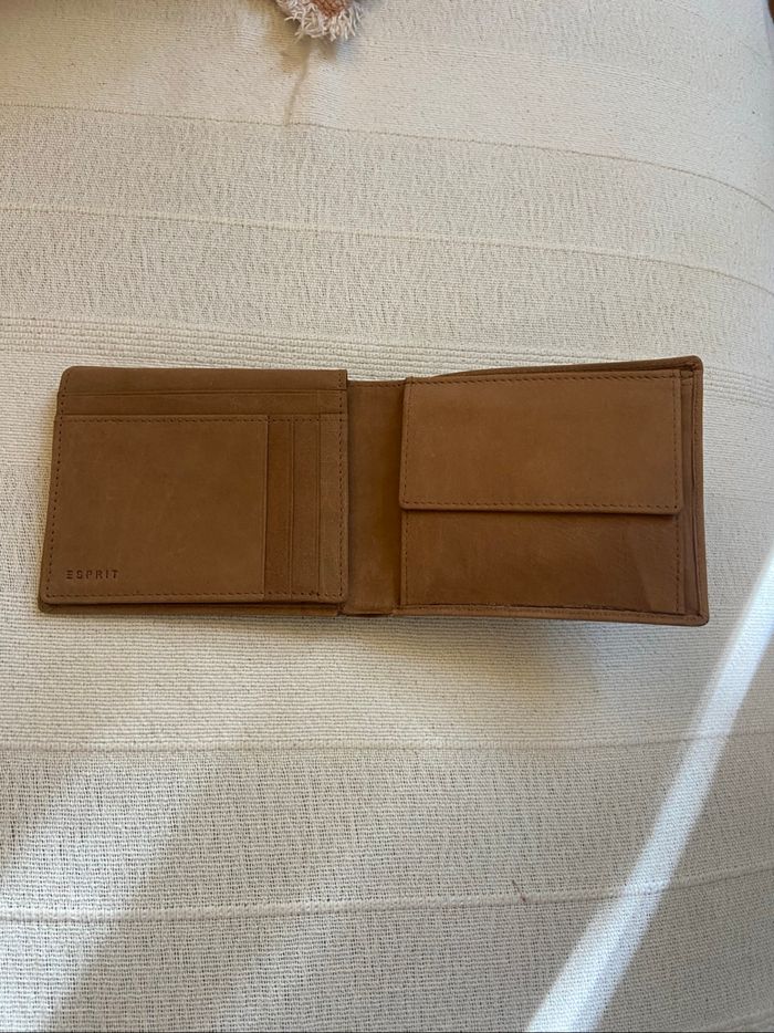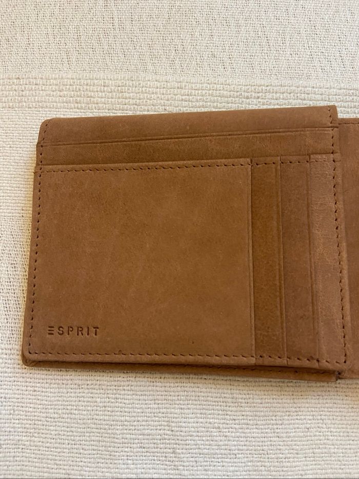 portefeuille en cuir de buffle de la marque Esprit. - Type de produit : Porte-monnaie & portefeuille - Univers : Homme - Marque : Esprit - Matière : Cuir - Couleur : Camel - Dimensions : 12 x 10 x 2 cm État : Neuf sans étiquette Pochette de rangement Compartiment pour les pièces ,pour les cartes et les billets