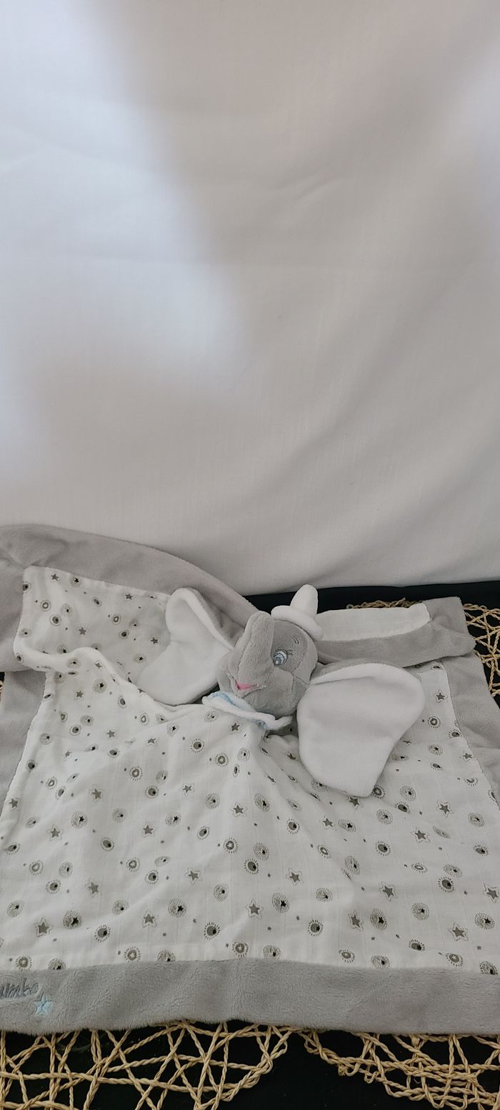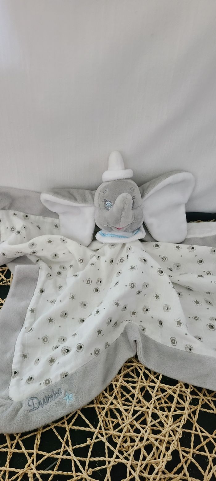 Doudou éléphant Dumbo gris lange blanc étoiles Disney baby