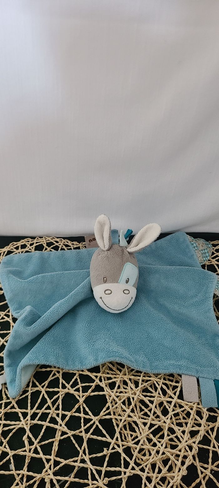 Doudou plat âne cheval gris bleu Gaston et Cyril NATTOU