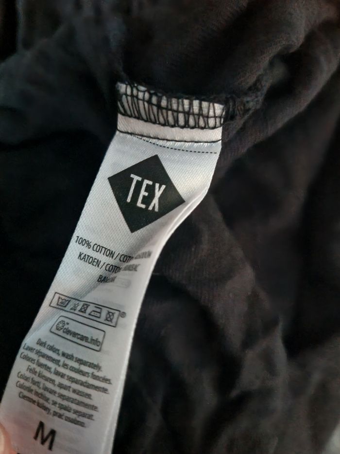 Blouse noir à manches longues,taille M marque Tex,longueur 78cm, largeur 60cm, longueur épaule à aisselle 22cm, largeur aisselle à aisselle 48cm, longueur manche 45cm.