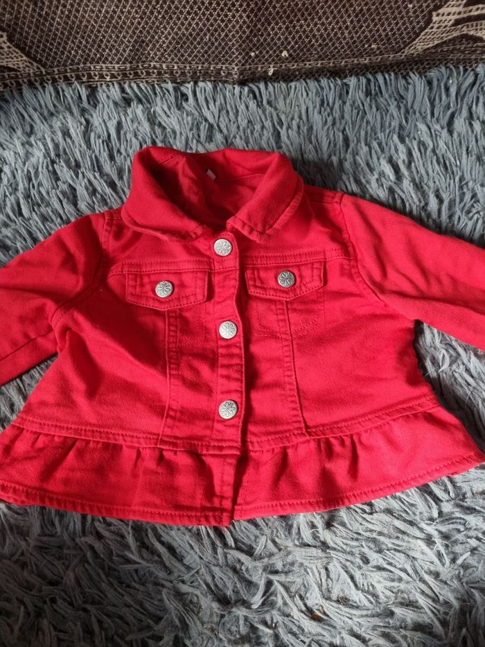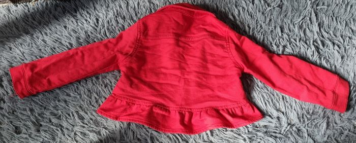 Veste en jean rouge à pressions, taille 23mois, fausse poches.