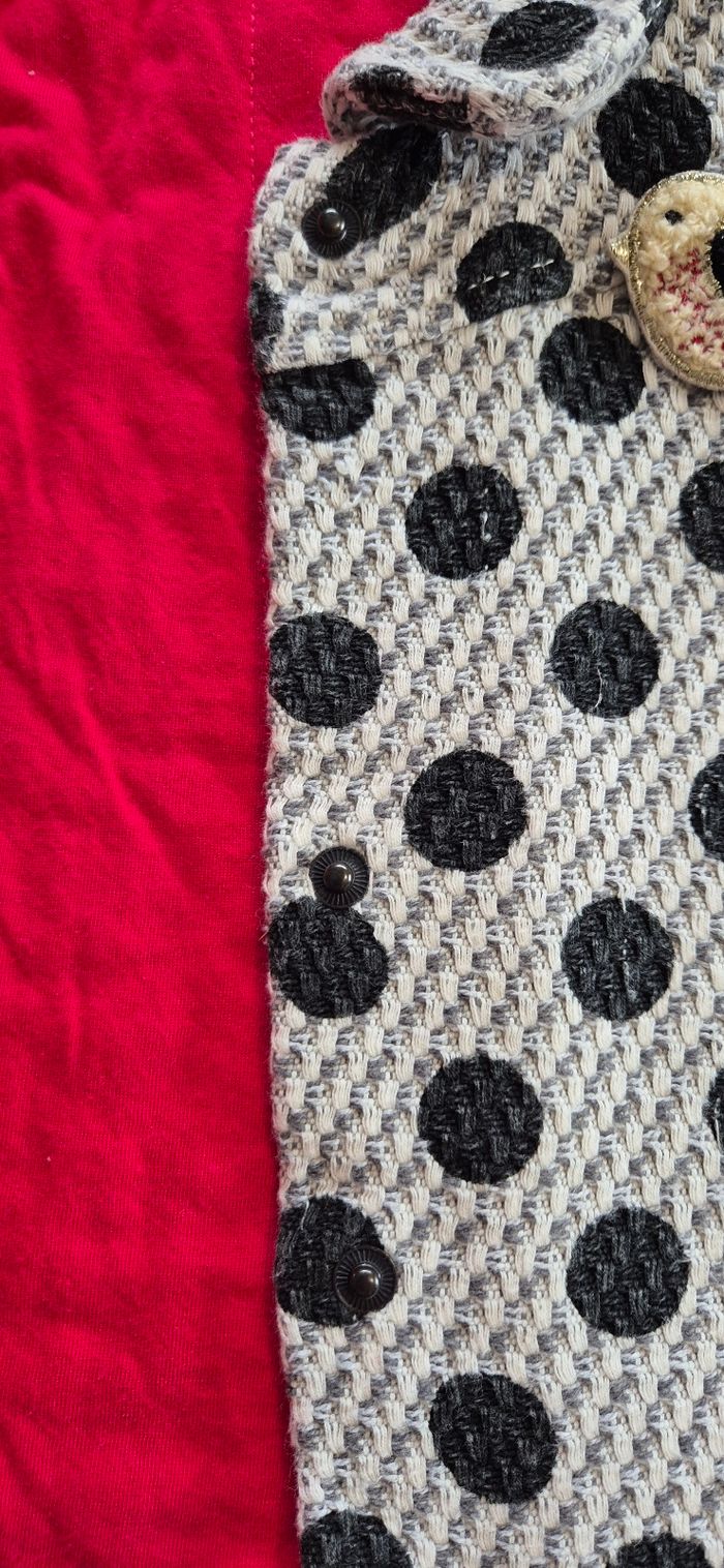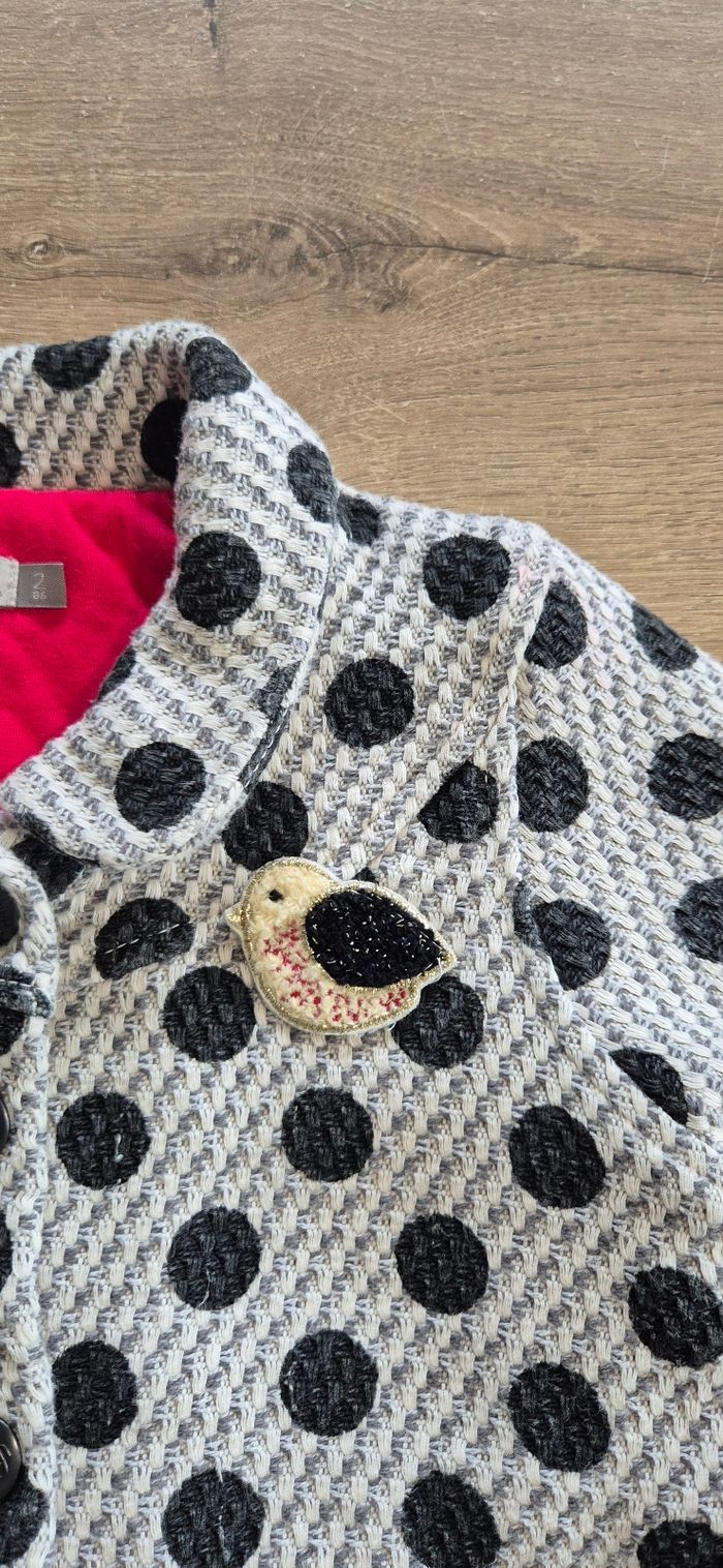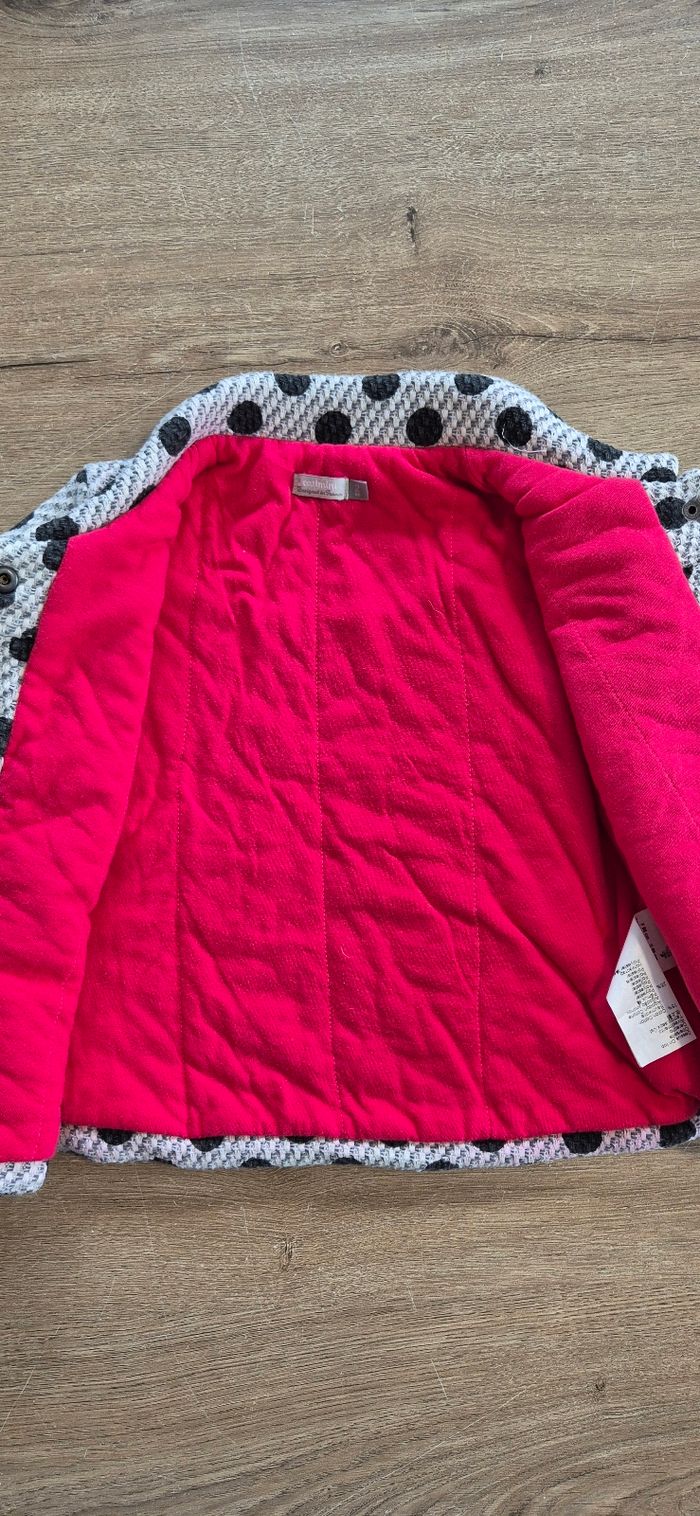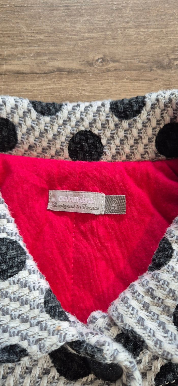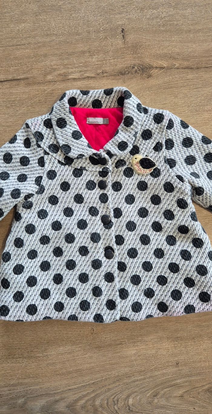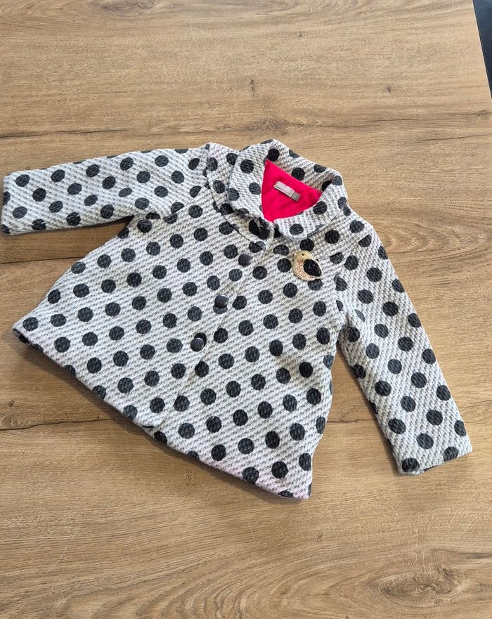 Manteau à pois avec petit oiseau Catimini taille 24 mois Très bon état (manque juste un bouton pression, mais n'empêche pas la fermeture du manteau, voir dernières photos)