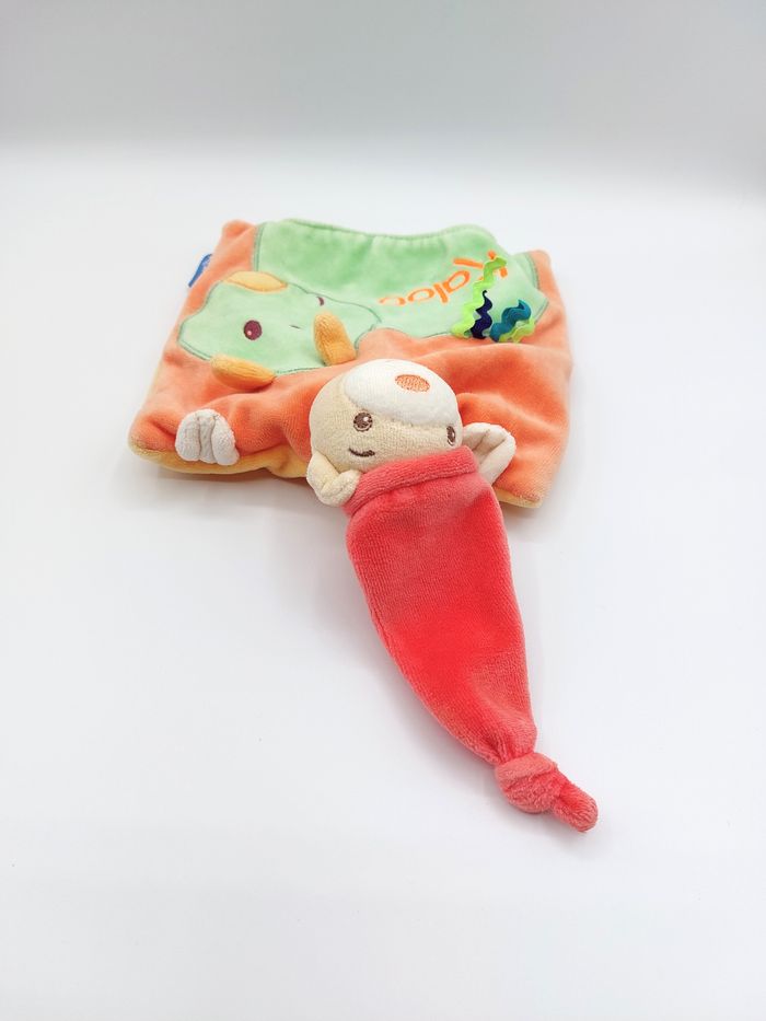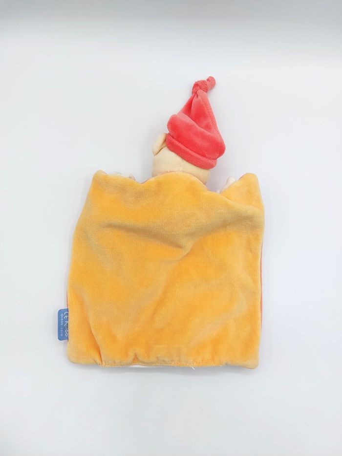 Doudou plat marionnette ours orange jaune bonnet KALOO 1998-2010 dragon vert - photo numéro 5