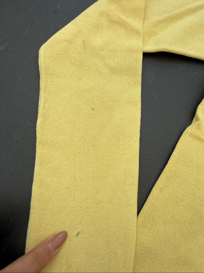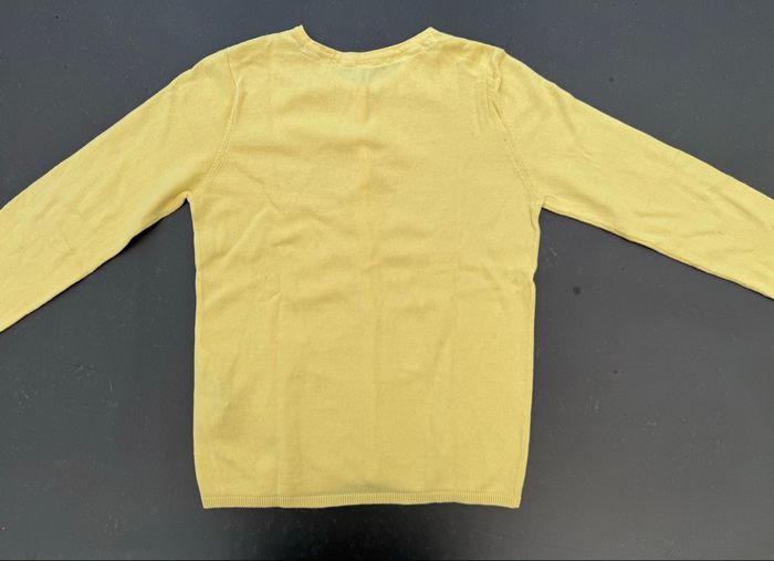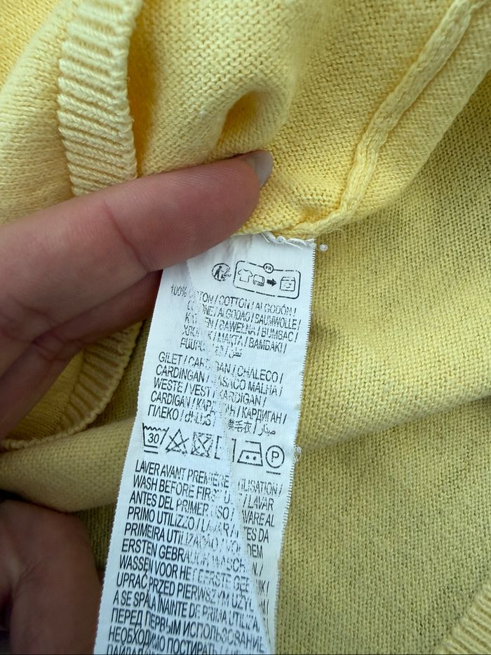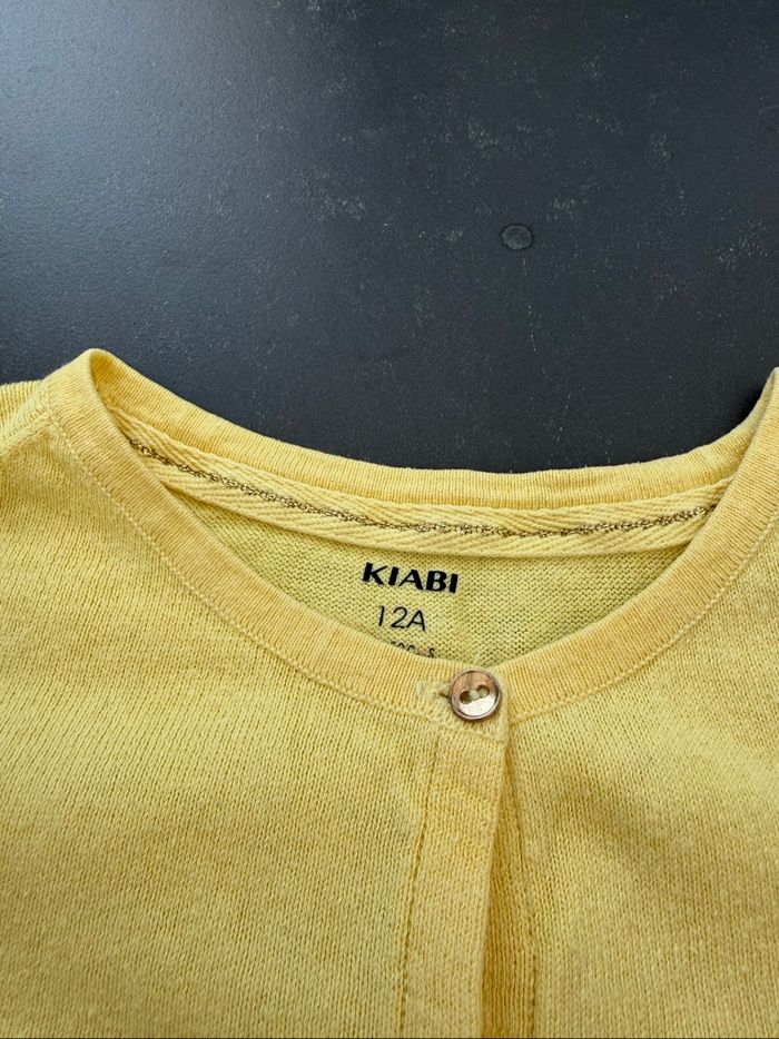 Gilet léger de couleur jaune. Fermeture par petits boutons dorés. En excellent état, mais ⚠️ présente de petites tâches tenaces (dos et arrière bras droit). 100% coton. Taille 12 ans, marque Kiabi. Envoi rapide et soigné, réduction automatique dès 2 articles sélectionnés. Mes autres ventes ici: #giletfille12ans