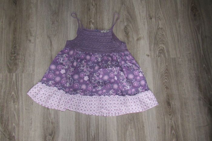 #10Ans_Fille_Nathg2210 DÉBARDEUR A BRETELLES MAUVE FILLE "VYNIL FRAISE BY GÉMO" - 10 ANS - n°03 Débardeur ou Chemisier à bretelles mauve - Motif fleurs multicolore - Haut violet brodé - Volant parme dans le bas - Forme évasée - Zip dos - Dimensions aisselle à aisselle : 33 cm et longueur totale : 42 cm - Matière : 100% coton. Article d’occasion en très bon état - Sans trou - Ni tache - Lavé et repassé pour la vente. Possibilité d'envoyer d'autres photos sur simple demande. Maison non-fumeur - Sans animaux. Réduction lot activée. Allez voir mes autres ventes, je vide les placards. Beaucoup de vêtements de marque et beaucoup de jouets. Remise en mains propres ou possibilité d'envoi au tarif en vigueur à votre charge. Retour Refusé. Pour tout renseignement, n'hésitez pas à me contacter, je répondrai volontiers à vos questions. Réponse Assurée. Pour Consulter mes autres annonces tapez Nathg2210.