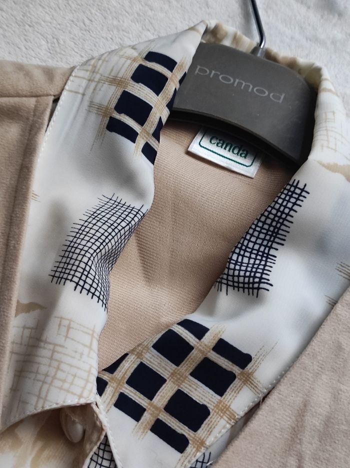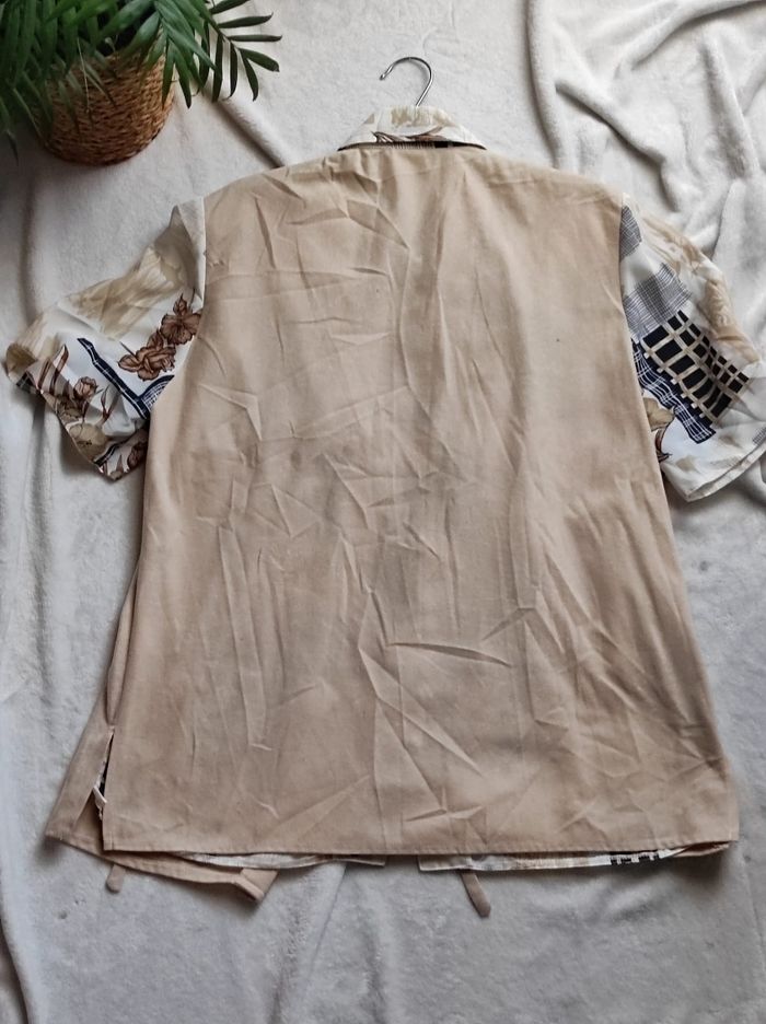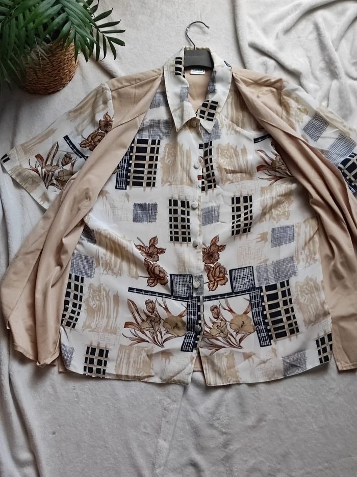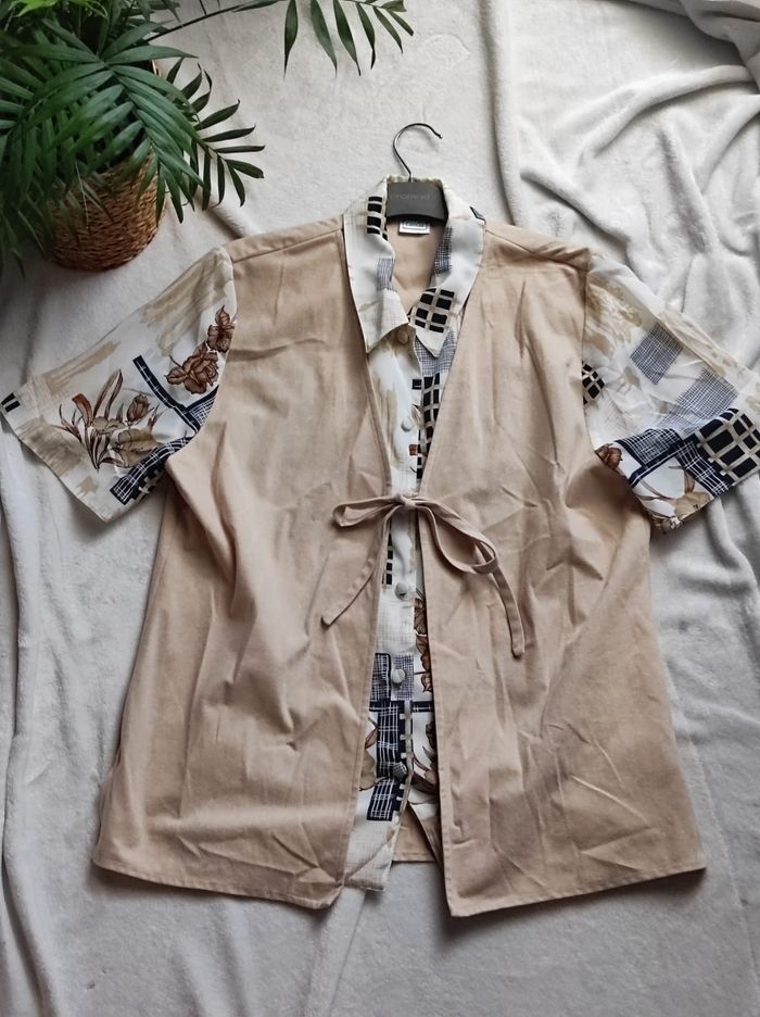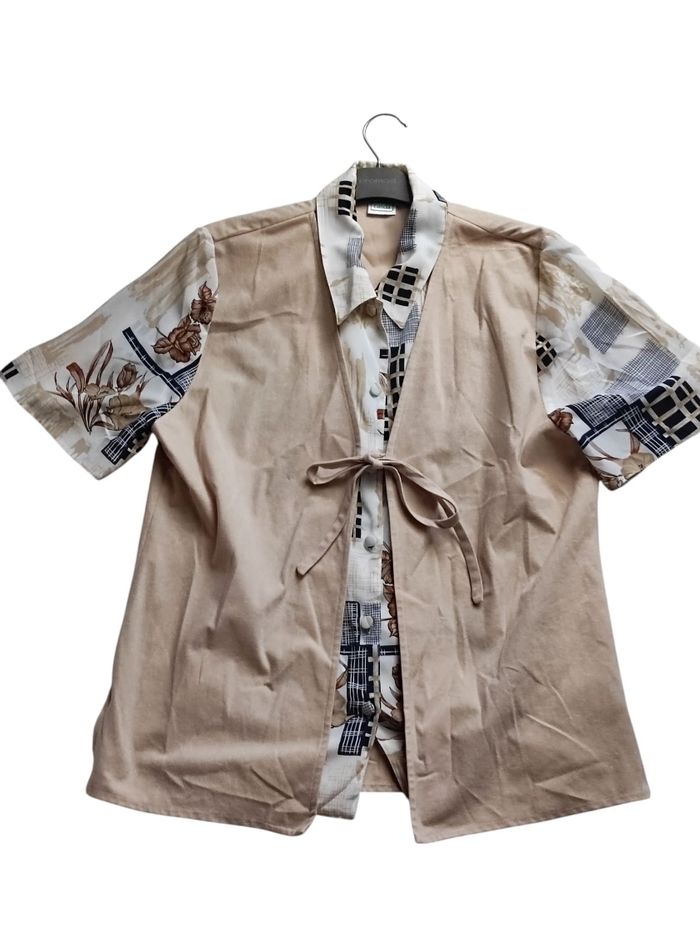 magnifique chemisier vintage 2en1 à manches courtes et sa petite veste incrustée au chemisier avec son petit cordon d'attache.