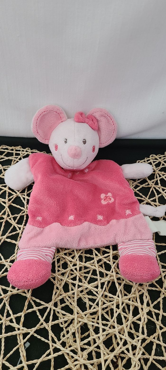 Doudou plat souris SIMBA TOYS rose gris fleur noeud Nicotoy