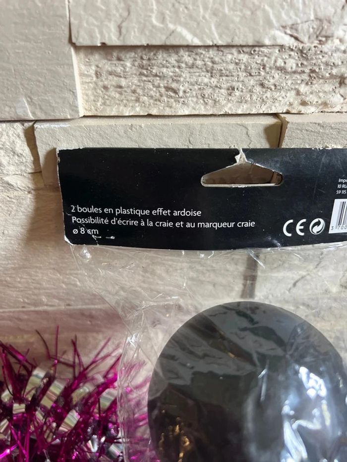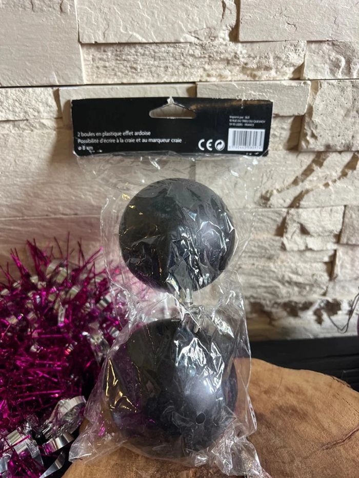 ✨Etat : NEUF ✨Dimensions : 8cm de diamètre ✨Lot de deux boules effet ardoise à décorer à la craie ou au marqueur 📦Envoi rapide Possibilité de lot avec les autres articles du dressing 🍾Pour tous les articles FETES : #sabysabochefêtes 🏘️Pour tous les articles ATELIERS CREATIFS : #sabysabocheatelierscréatifs #SapinNoel #Noel #AccessoiresNoel #TableNoel #DécorationNoel #BoulesSapin