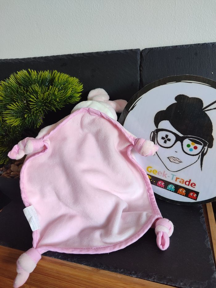 doudou lapin rose carré picot bleu blanc colerette Plat Laboratoire Violet 2058