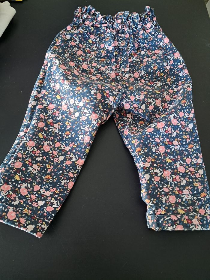 Pantalon mom fleurie fond bleu.marine 18 mois