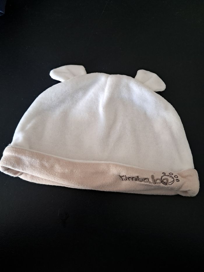 1 bonnet chaud Doux Blanc revers beige Avec petits oreilles Marque kimbaloo