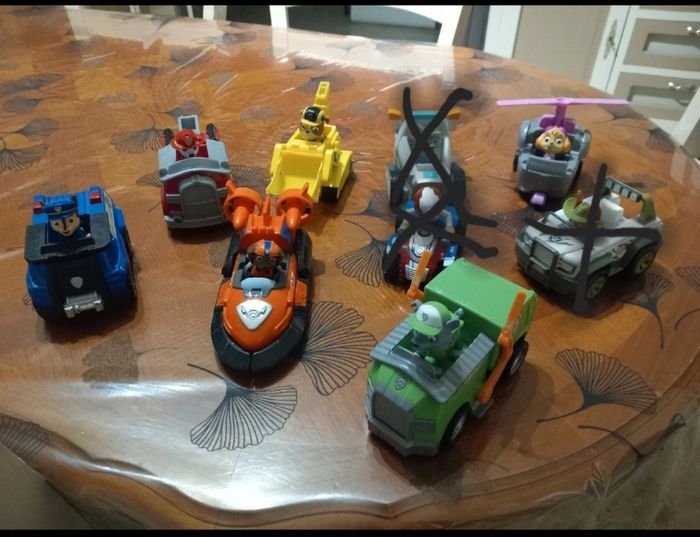 6 figurines avec leur véhicules. Dernière photo en cadeau 🎁 Non cassés, qq traces d'usures.