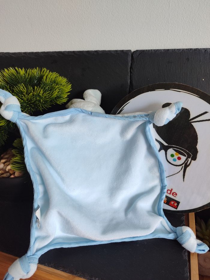 doudou plat picot lapin bleu clair noeud papillon blanc violet rose DD003487 - photo numéro 3