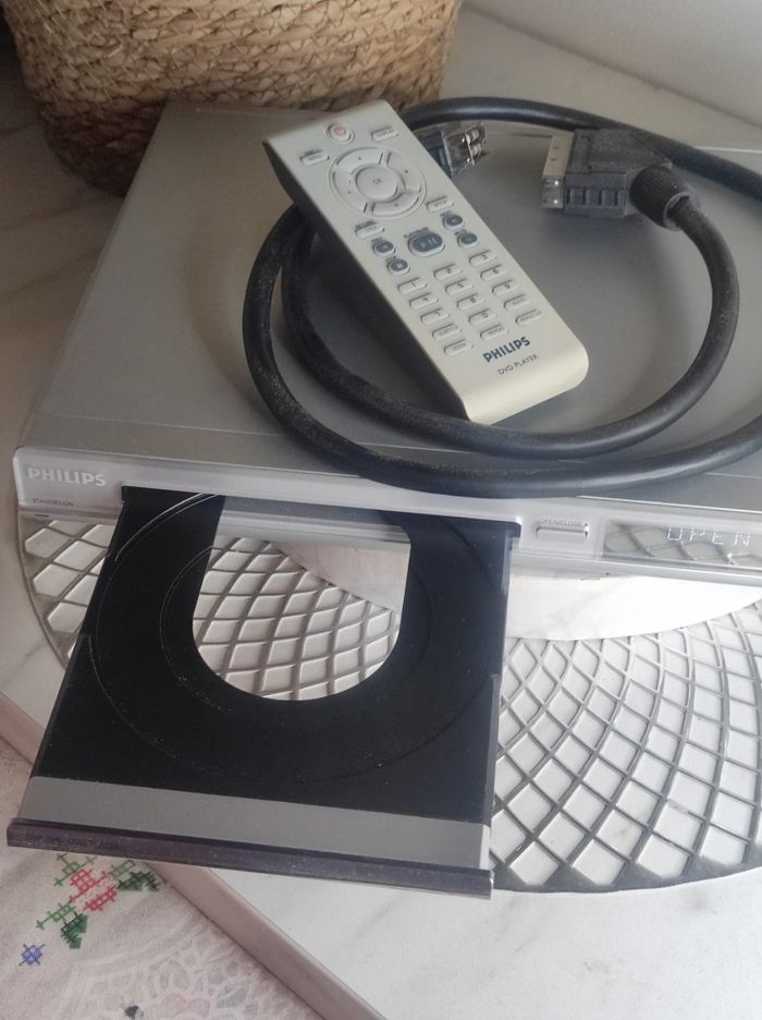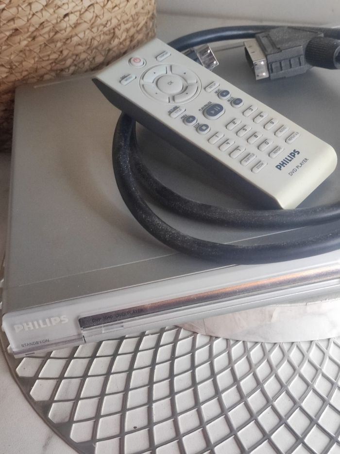 Lecteur DVD Philips, parfait pour regarder vos films préférés. - Type de produit : Lecteur CD / DVD - Marque : Philips - Accessoires inclus : Télécommande et câble péritel ( piles non fournis avec la télécommande ) Très bon état.
