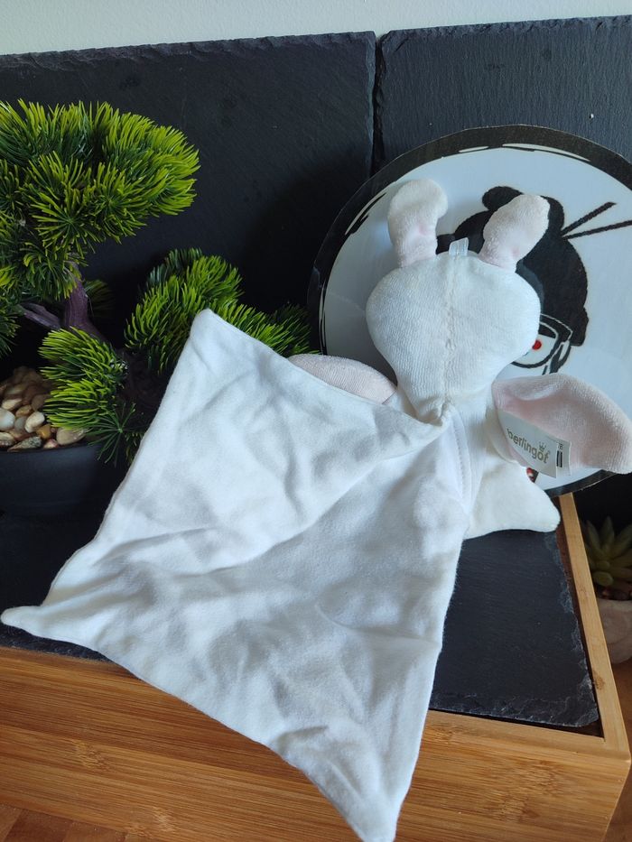 doudou lapin berlingot mouchoir blanc rose couronne doré aime chauve souris - photo numéro 1