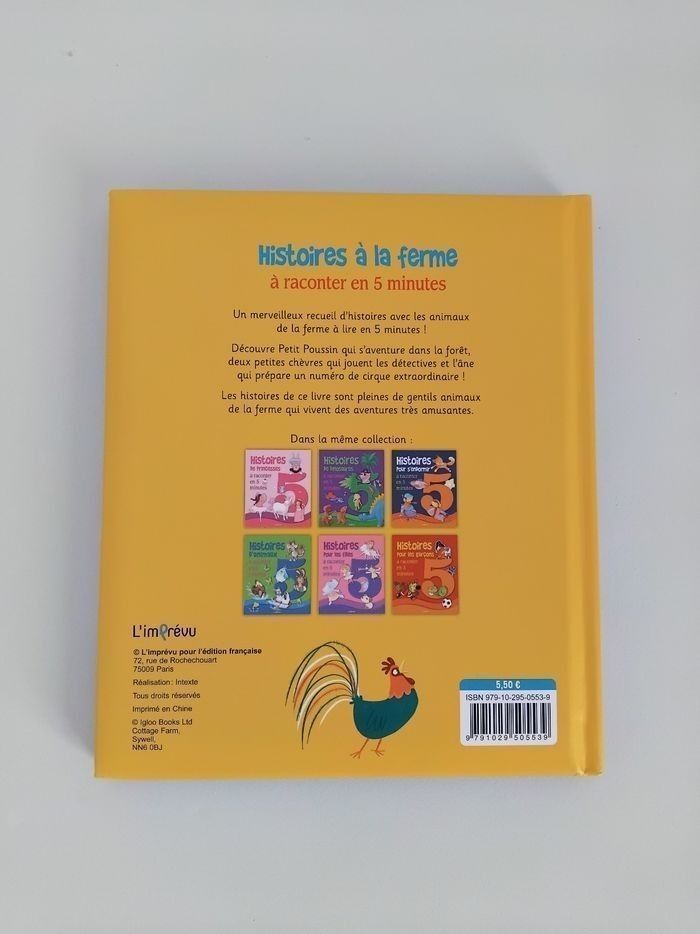 🐮🐷 Vends Livre pour Enfant comprenant 5 Histoires avec les Animaux de la Ferme: 5 Histoires à la Ferme à raconter en 5 Minutes. 👍 Livre de seconde main en Très Bon Etat, voir les photos. 🛍 Groupez vos Achats et Cumulez les Promos! ✅️ Remise sur Lot Offerte dès le 2éme article, jusqu'à -10% ! 💌 Envoi rapide et soigné. 📦 Expédié en Points Relais. ✅️ Economisez -20% sur les Frais de Port Pour une livraison plus rapide, privilégiez Mondial Relay. Dépôt des colis au point relais du lundi au samedi. Rèf. Annonce : HISTF-A392 Livre Bébé Histoires à la Ferme à raconter en 5 Minutes
