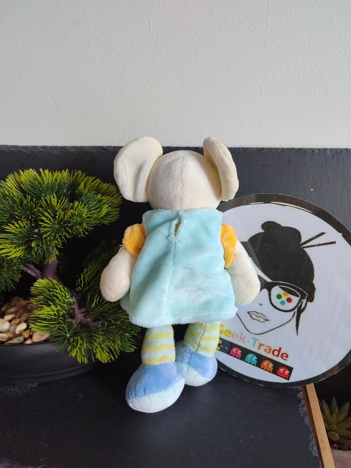 doudou peluche souris mots d'enfants bleu vert jaune rayé oiseau maison robe - photo numéro 1