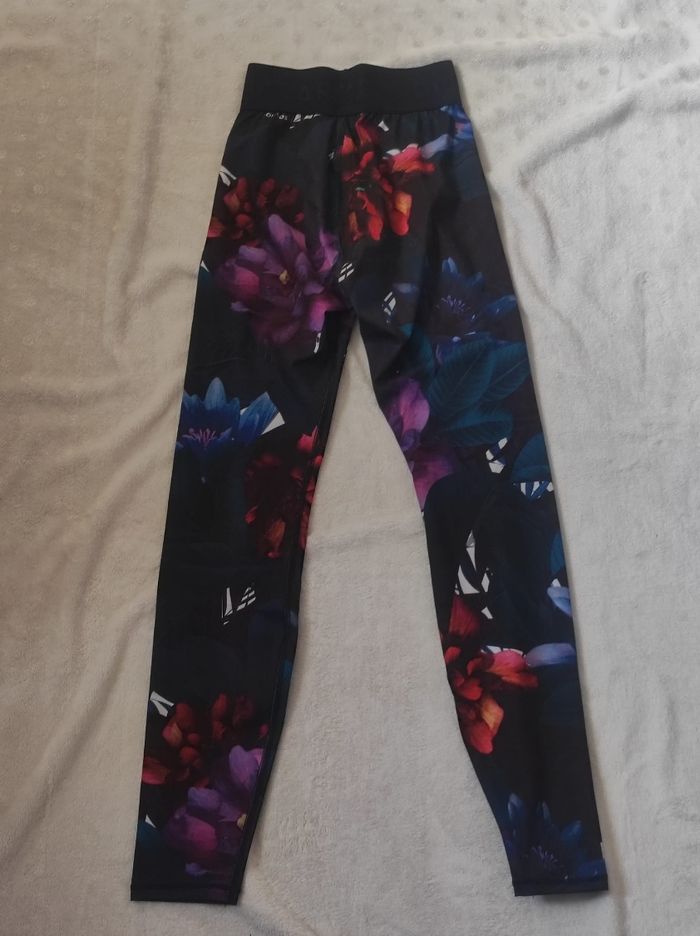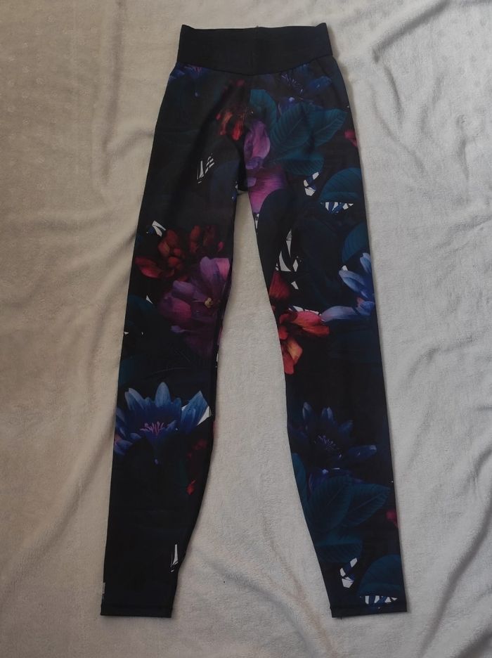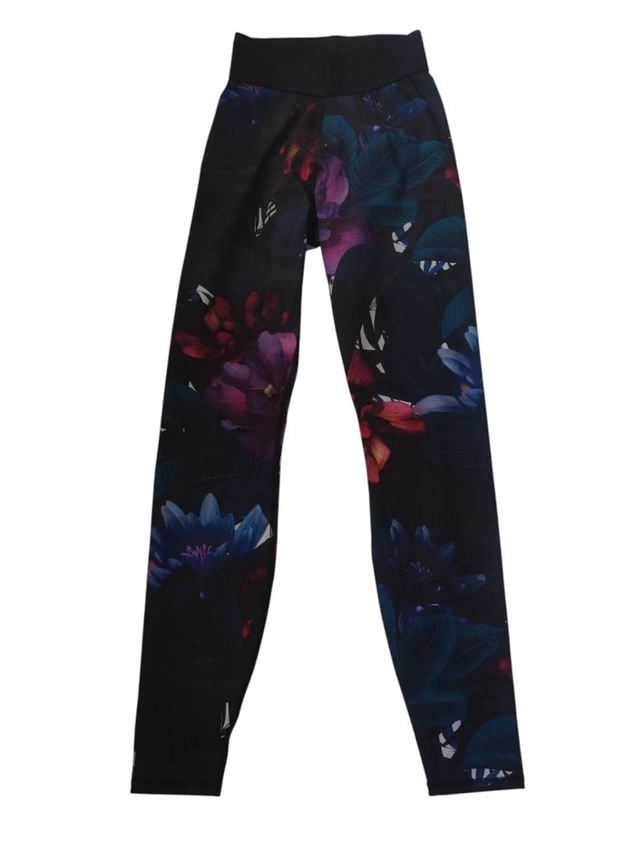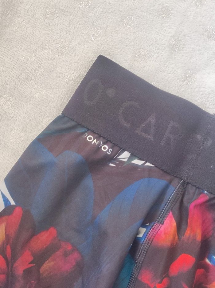 legging de sport imprimé fleuri extensible. Taille élastique, matière douce et agréable. Petit poche cachette en intérieur. Marque Domyos en taille unique. Dimensions Tour de taille 25,5 Tour de hanches 41 Longueur 94 En parfait état