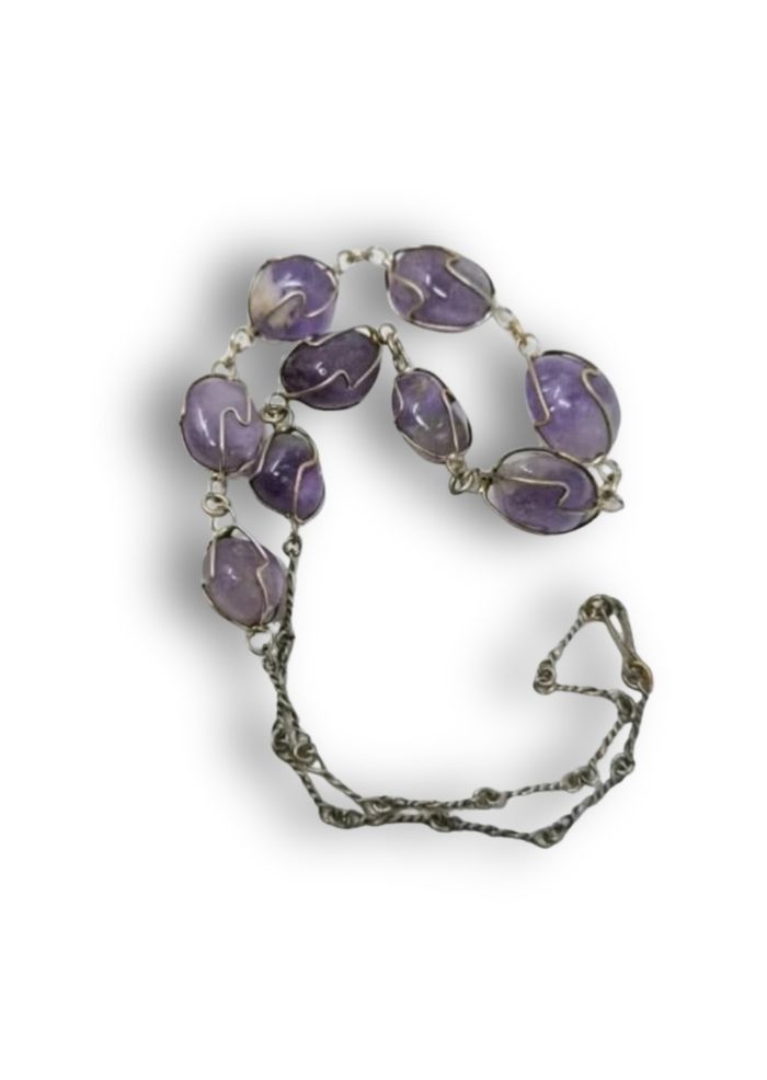 Collier vintage artisanal en améthystes naturelles – années 70 - photo numéro 1