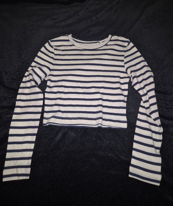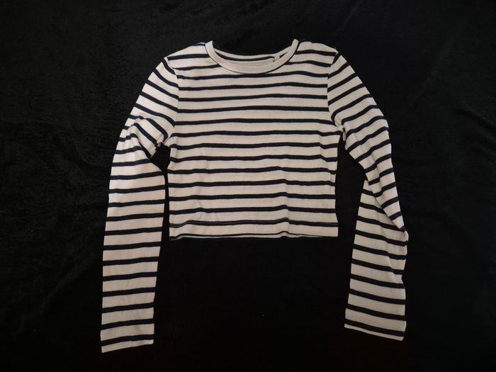 ▪︎Tee-shirt manches longues ▪︎Marinière blanc et bleu marine ▪︎Taille 9/10 ans ▪︎Lefties ▪︎Coupe un peu courte mais pas crop top #milihow_girl9ans #milihow_girl10ans