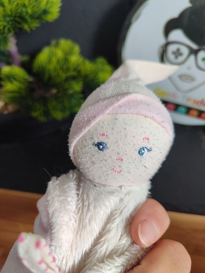 Doudou plat poupée rose blanc Fleur de Coton corolle coeur bonnet 2015 Rayé - photo numéro 2