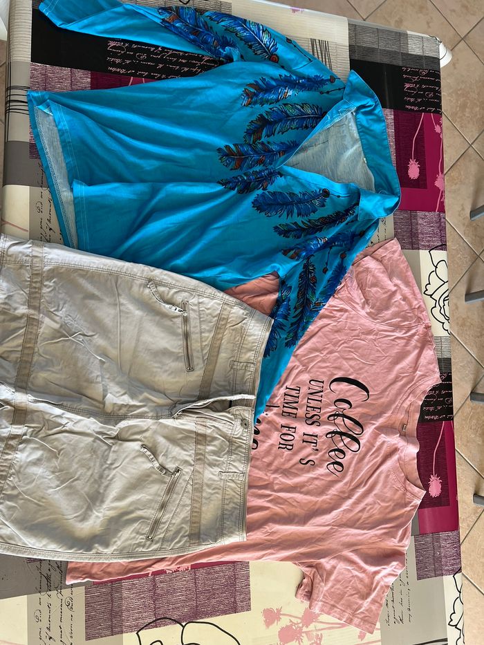 LOT FEMME 2XL - 1 CHEMISIER - 1 T.SHIRT - 1 JUPE