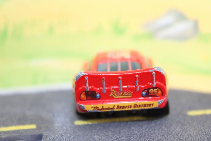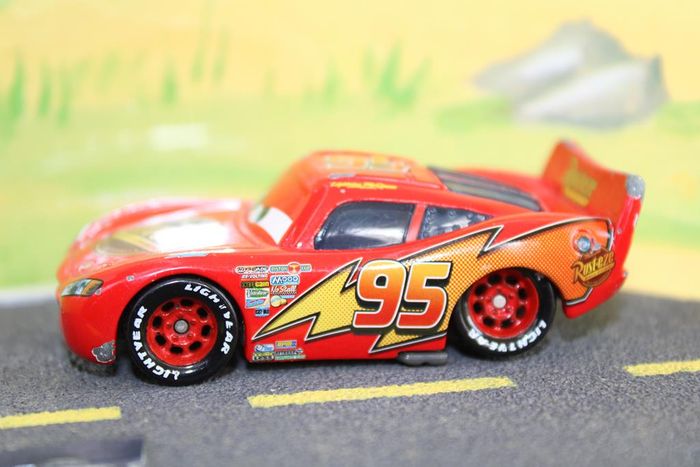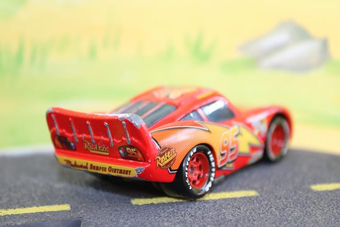Voiture miniature de l'univers cars des films Disney représentant Flash Mc Queen en version hargneux