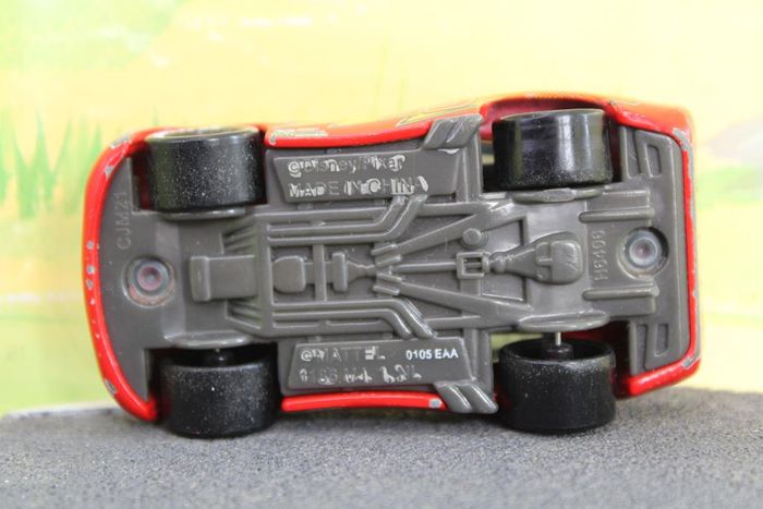 Voiture miniature fabriquée par Mattel mesurant environ 8 cm.