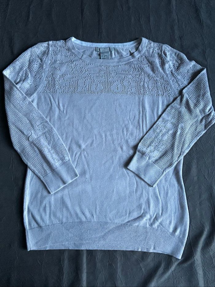 pull fin en maille ajourée sur le haut et les manches. Taille S de la marque H&M Forme droite, manches 3/4. Couleur beige clair. En très bon état.