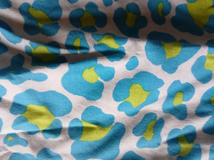 Robe a manches courtes blanche a motifs verts et bleus. Taille 2 ans. Bon état