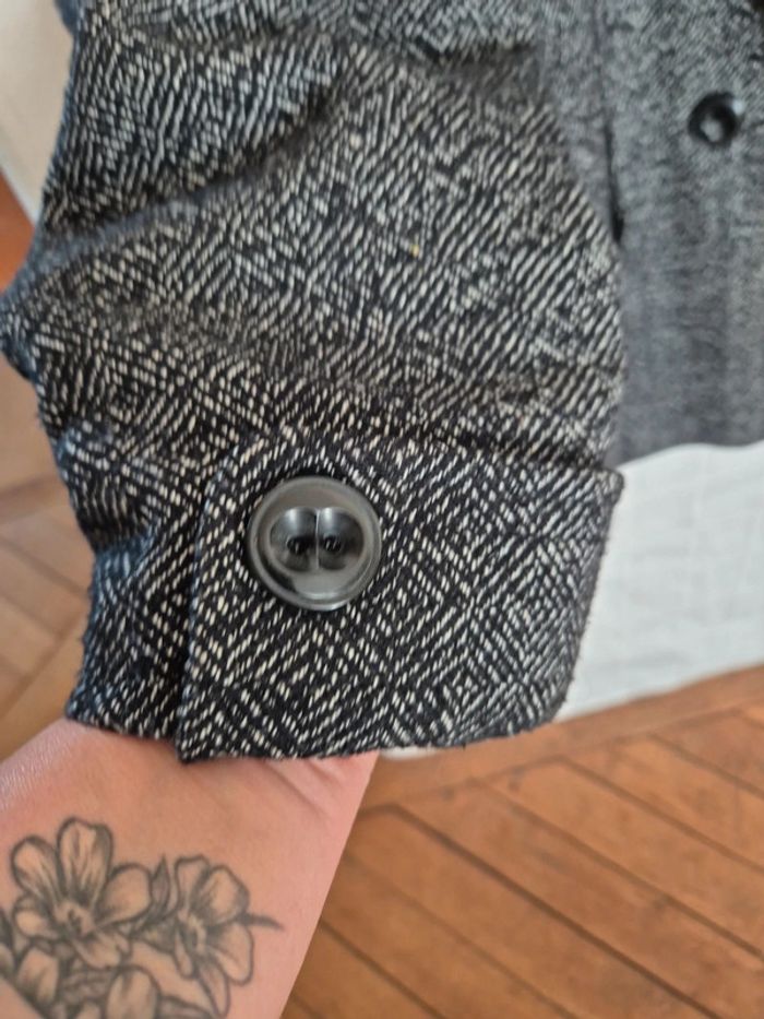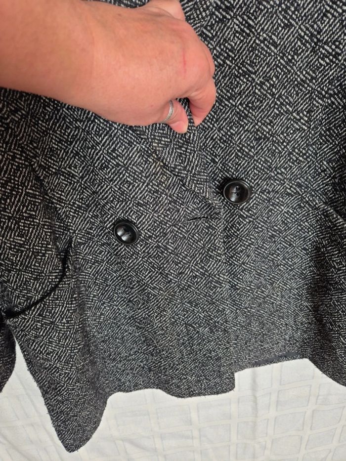 ⬇️mes autres annonces pour femme en taille 44👉 #cg89femme44 un manteau noir shiné blanc, avec 2 poches devant, il est entièrement doublé. Il a un charme fou avec ses gros boutons. Il mesure 54 aisselles et 76 cm de longueur bon état (quelque bouloche) - taille 44 - marque facotex #manteau #veste #caban #pardessus #blazer